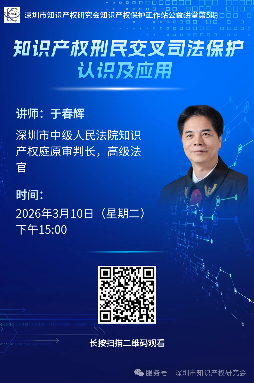 深圳市知识产权研究会公益讲堂第5期“知识产权刑民交叉司法保护认识及应用”开讲预告